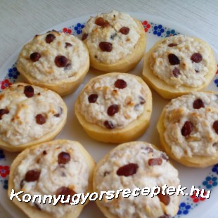 A túrós töltelék hozzávalóit egy tálban összekeverjük. Megkóstoljuk, ha édesebben szeretjük, akkor tehetünk még hozzá cukrot.