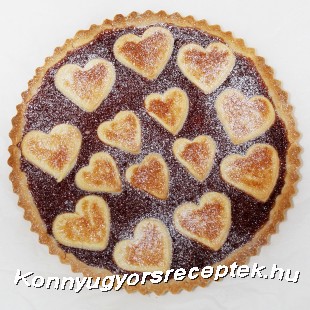Ezután csípjük le a tészta 1/3 részét, majd nyújtsuk ki vékonyra, és szív formájú kiszúróval szúrjuk ki. Tegyük tálcára, majd tegyük be a hűtőbe, még összeállítjuk a pitét.