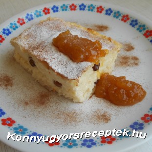 A tojások fehérjéjét a maradék cukorral habbá verjük. A túrós keveréket összeforgatjuk a kiáztatott, lecsöpögtetett mazsolával és a cérnametélttel, majd óvatosan hozzákeverjük a