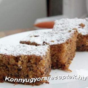 Melegítsük elő a sütőt 150 fokra. A cukrot és az olajat jól elkeverjük. A tojásokat egyesével hozzáadjuk, és minden darabnál jól elkeverjük. A száraz hozzávalókat egymással elkeverjük és hozzáadjuk a tojásos részhez. Végül mehet bele a reszelt sárgarépa és a dió. Öntsük olajozott tortaformába és kis lángon lassan süssük, míg barna lesz a teteje. (Belsejét tűpróbával ellenőrizzük.)